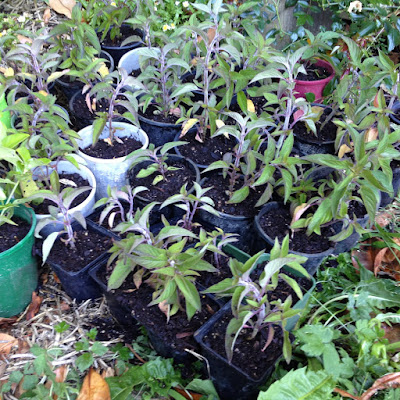 I've been making a lot of manuka seedlings and cuttings and trees lately, for the beebiz. But when the manuka is not flowering, the bees need food still. So I think that pineapple sage and rosemary might fill the gap. Pineapple sage in particular seems to flower for months on end, from about autumn till spring, so perfect to fill the gap. And it is super easy to propagate from cuttings. And grows like crazy.